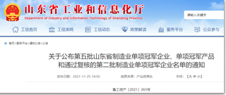 關(guān)于公布第五批山東省制造業(yè)單項冠軍企業(yè)